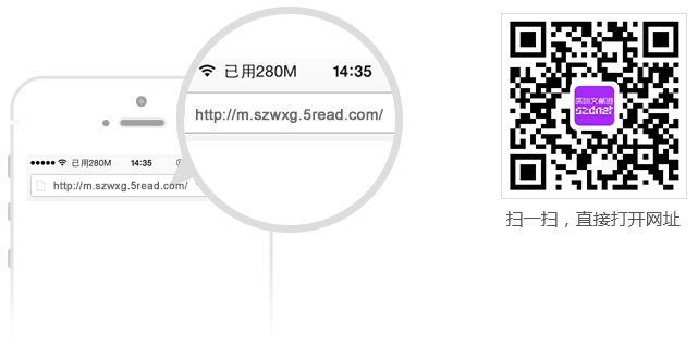 使用手機wap瀏覽器訪問http://m.szwxg.5read.com/或掃描二維碼,掃一掃直接打開網(wǎng)址。