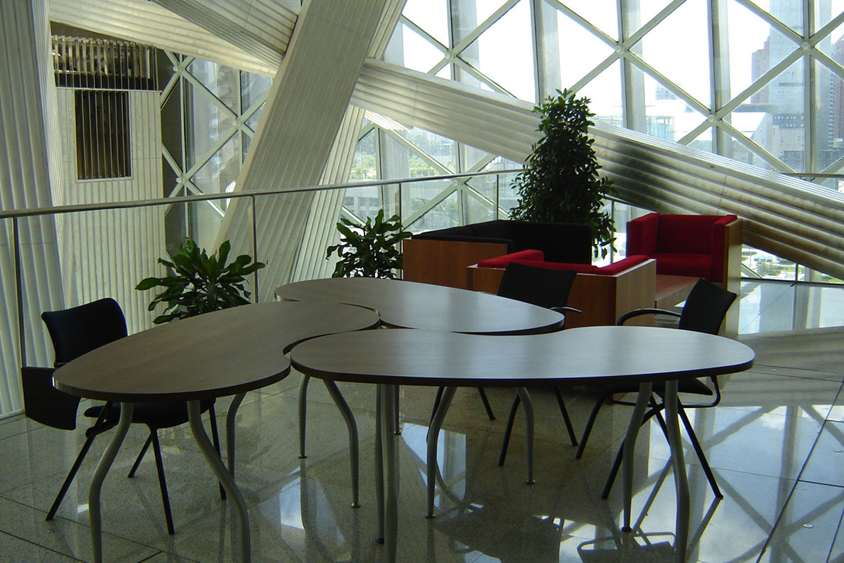 新館建筑由世界著名的日本建筑師磯崎新先生主持設(shè)計(jì),和音樂廳一道構(gòu)成深圳文化中心。寓意文化森林的圖書館正門“銀樹”和音樂廳正門“黃金樹”象征中心區(qū)文化城的“城門”。圖書館南側(cè)的三棟黑色放射性建筑狀若三本翻開的圖書,而東面柔美變化的水幕和三維玻璃曲面猶如委婉韻律的豎琴,從蓮花山鳥瞰,陽光下熠熠生輝,可謂剛?cè)岵?jì),煌煌大觀。